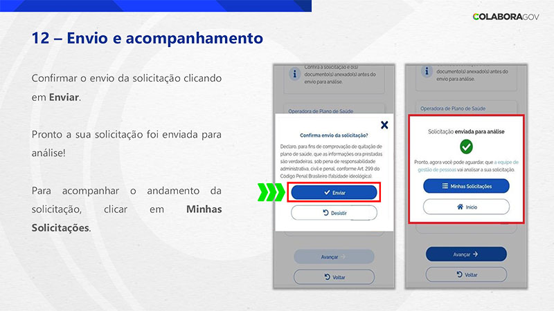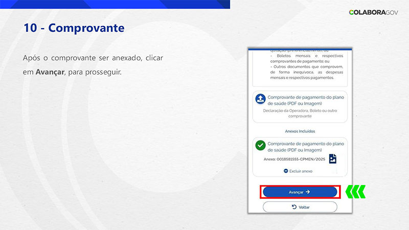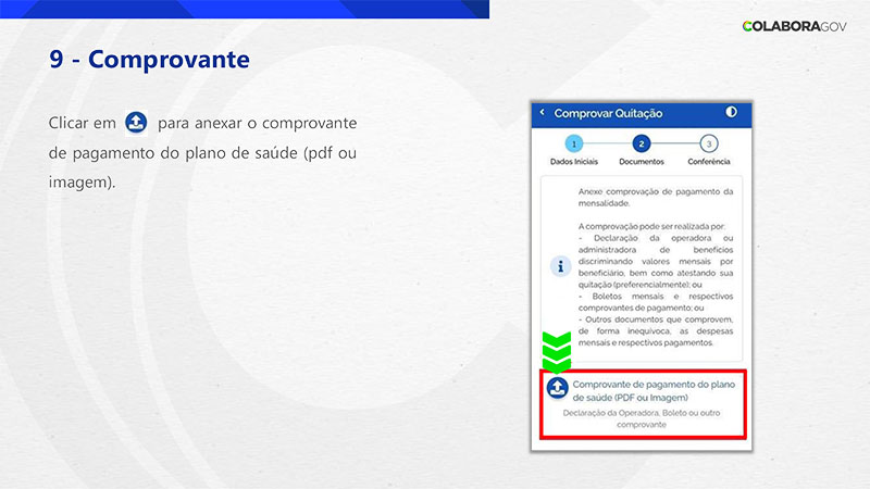Durante o procedimento, devem ser anexados documentos comprobatórios, tais como: boletos mensais e os comprovantes de pagamento; declaração da operadora ou administradora de benefícios, discriminando valores mensais, bem como a sua quitação; ou outros documentos que comprovem de forma inequívoca as despesas e respectivos pagamentos.