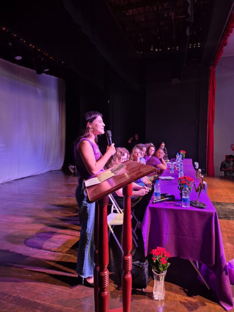Foi o “1ºEncontro: POR ELAS, POR NÓS!”, uma série de palestras no Teatro Judas Iscariotes. O evento atraiu cerca de 150 pessoas, entre autoridades locais, representantes de universidades, entidades sindicais, a rede municipal de proteção da mulher, polícia civil e militar, além da população em geral.