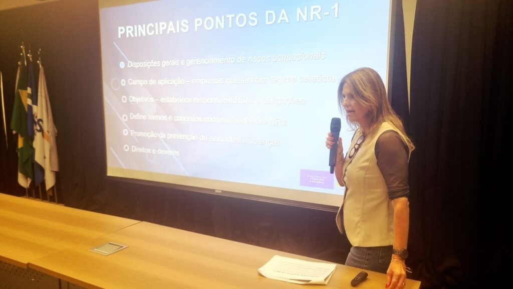 A Gerente Regional do Ministério do Trabalho e Emprego de Piracicaba, Gabriela Albuquerque, foi uma das palestrantes durante evento que debateu a nova NR1 – Norma Regulamentadora ligada à saúde mental do trabalhador – nesta quinta-feira (27) em Limeira.
