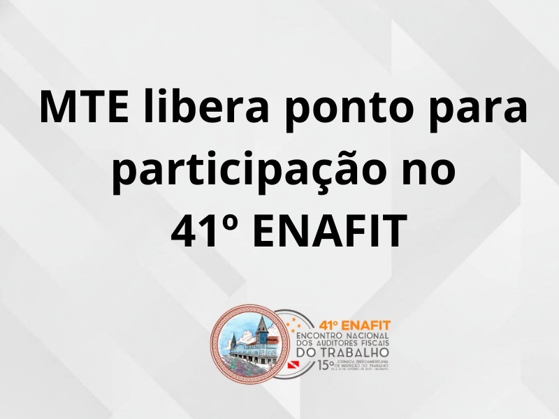 A Coordenação de Desenvolvimento de Pessoas do Ministério do Trabalho e Emprego (MTE) autorizou a participação dos Auditores Fiscais do Trabalho no 41º Encontro Nacional dos Auditores-Fiscais do Trabalho (ENAFIT), que será realizado de 26 a 31 de outubro de 2025, em Belém (PA).