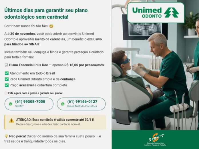 O SINAIT informa que firmou convênio com uma nova operadora de plano odontológico, disponível a todos os filiados, a Unimed Seguros Odontológico, empresa reconhecida nacionalmente pela ampla rede credenciada em todo o país. Em razão disso, o sindicato convida os filiados que ainda não possuem o plano odontológico a conhecerem as condições e benefícios oferecidos pela nova operadora.